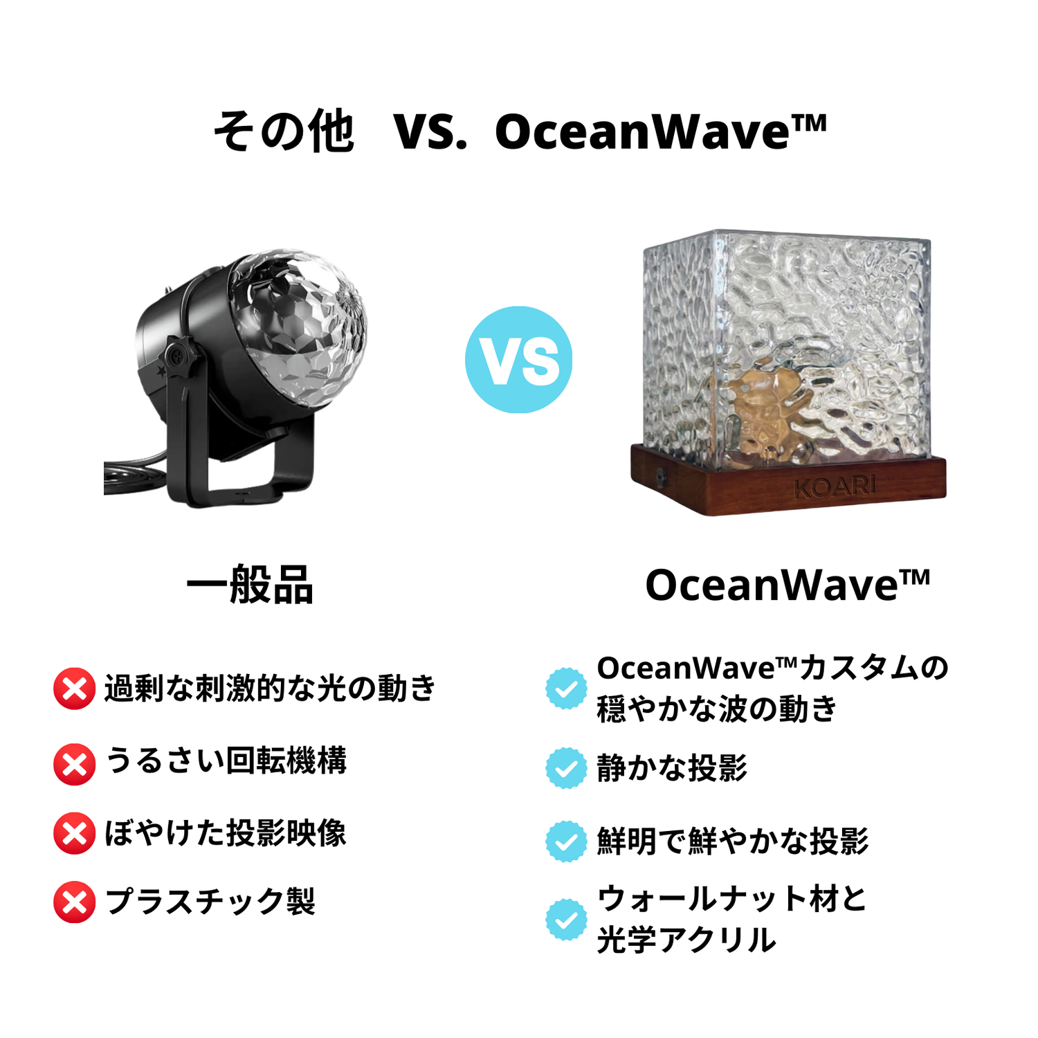 波のような優しいライトと音で、どれだけ心が落ち着くか、ぜひ確かめてください。